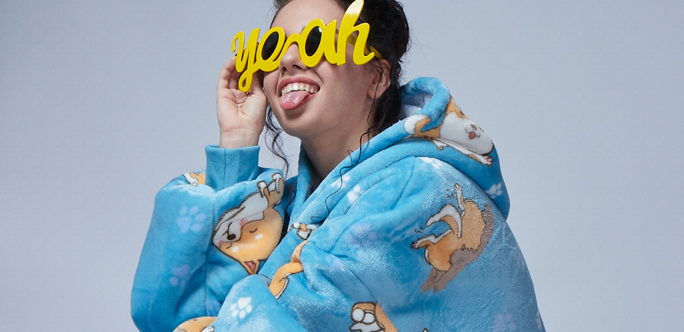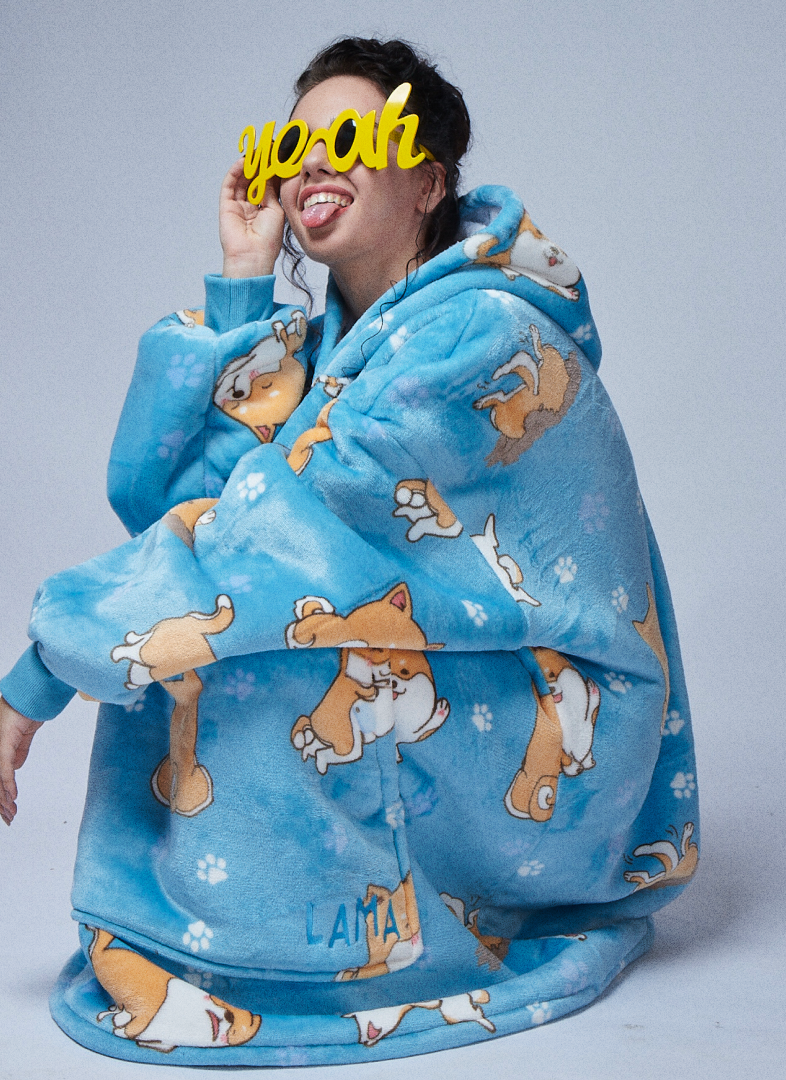 Double-layered with flannel fleece outside and sherpa fleece inside, the free size fit and gigantic pockets even fit your laptop.