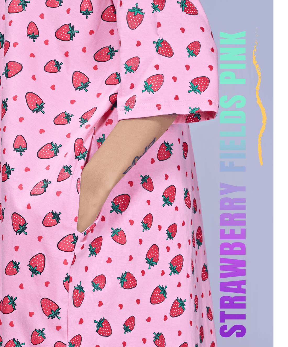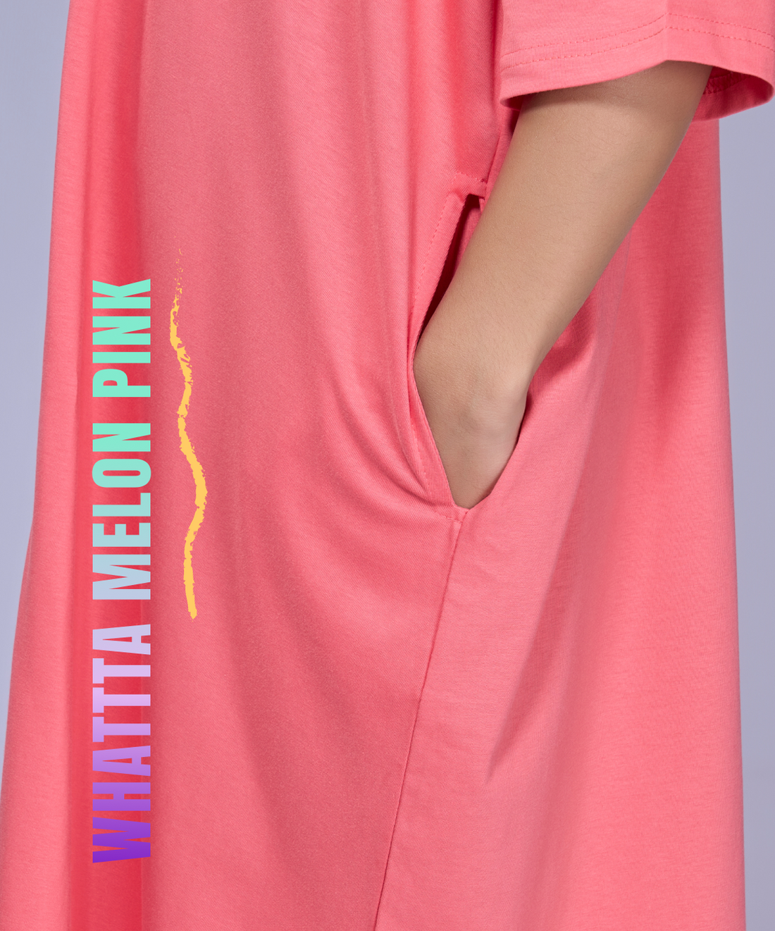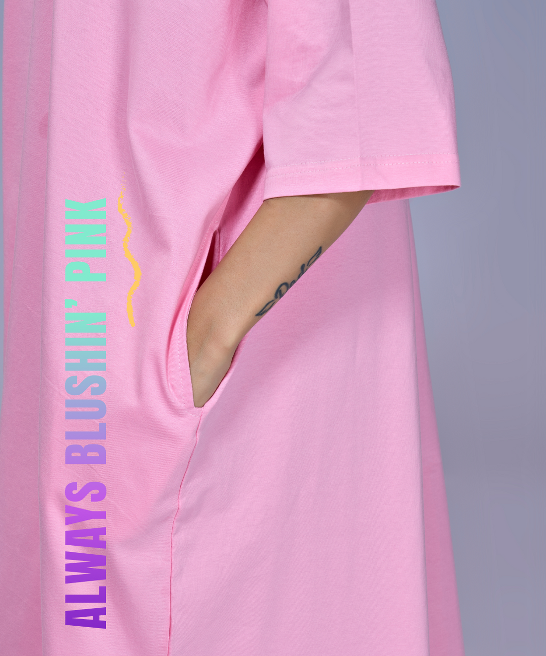 Kitty Kat Pink Oversized Printed Pocket Tees