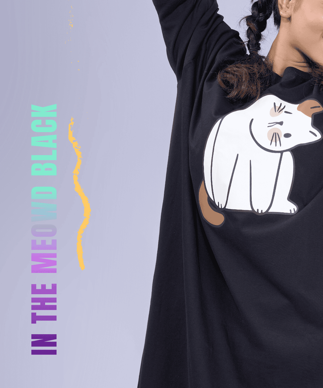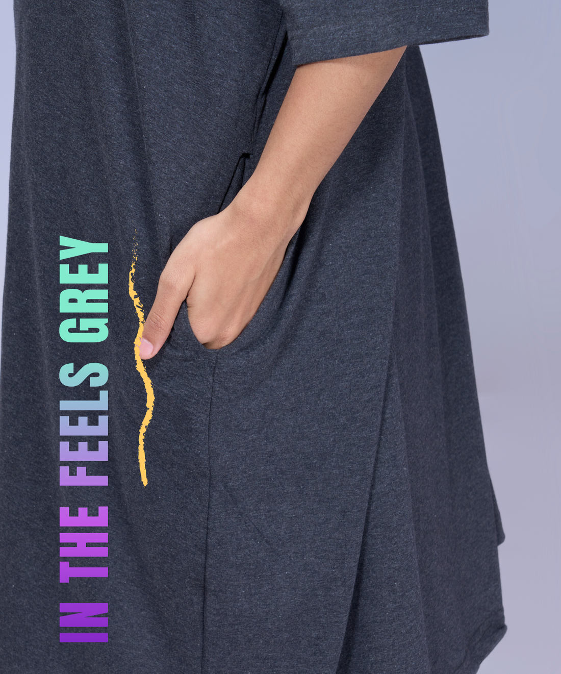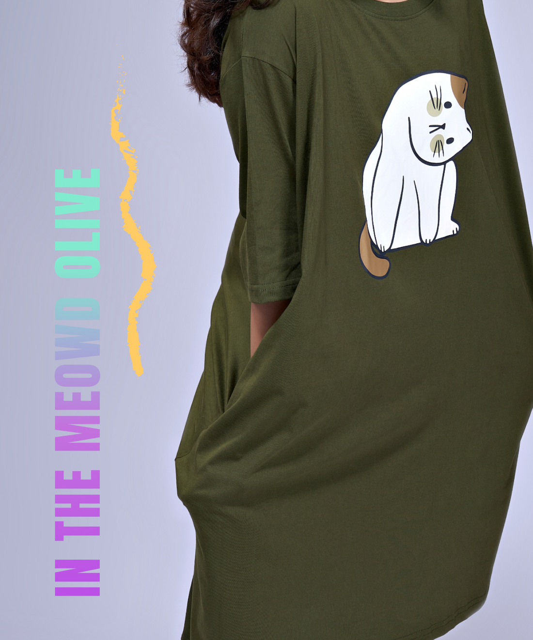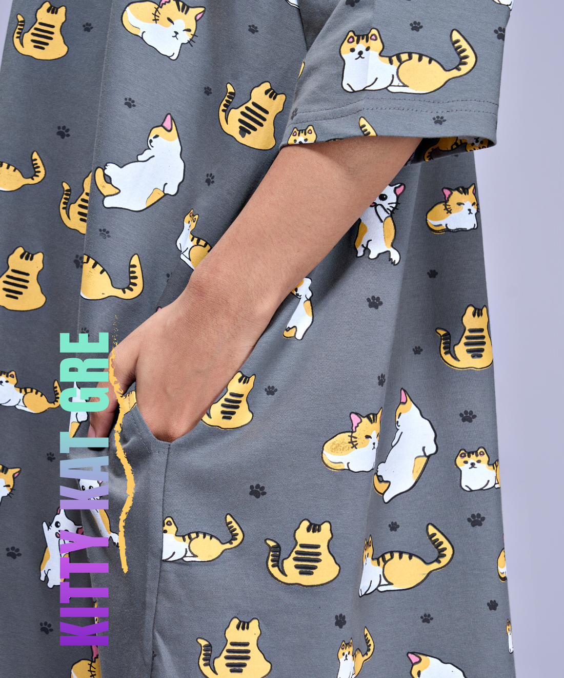 Kitty Kat Grey Oversized Printed Pocket Tee