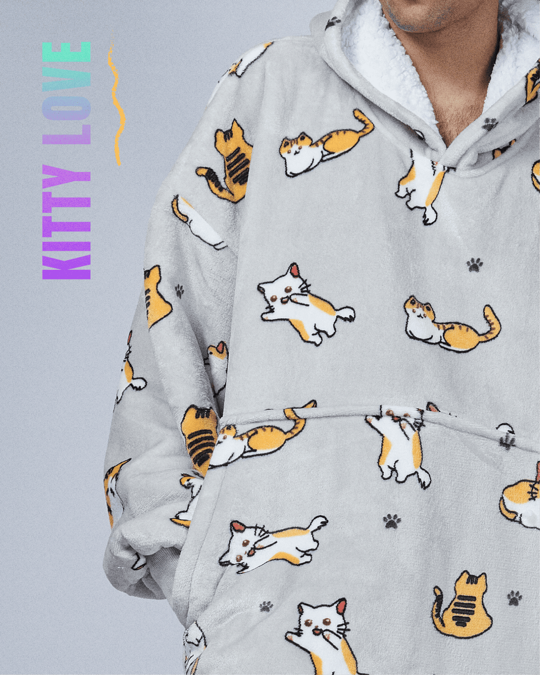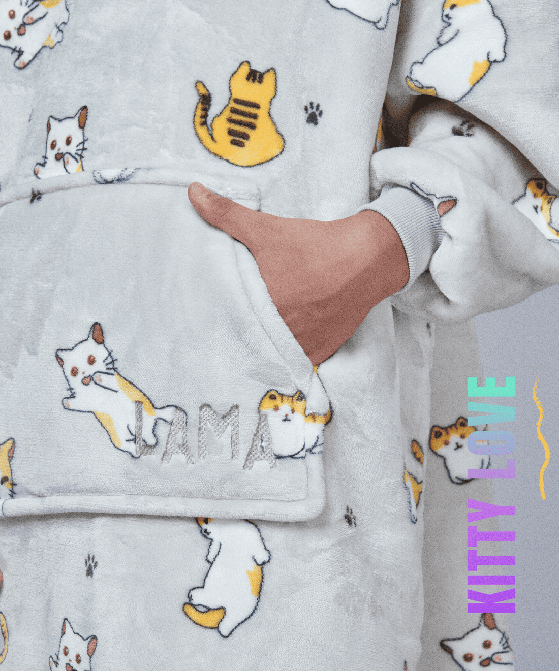Double-layered with flannel fleece outside and sherpa fleece inside, the free size fit and gigantic pockets even fit your laptop.