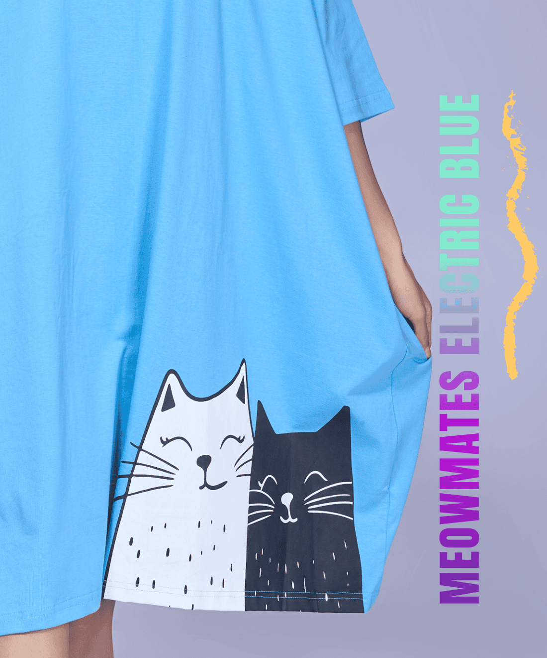 Meowmates Electric Blue Oversized Pocket Tee