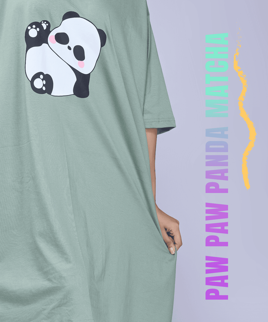 Paw Paw Panda Matcha Oversized Pocket Tee