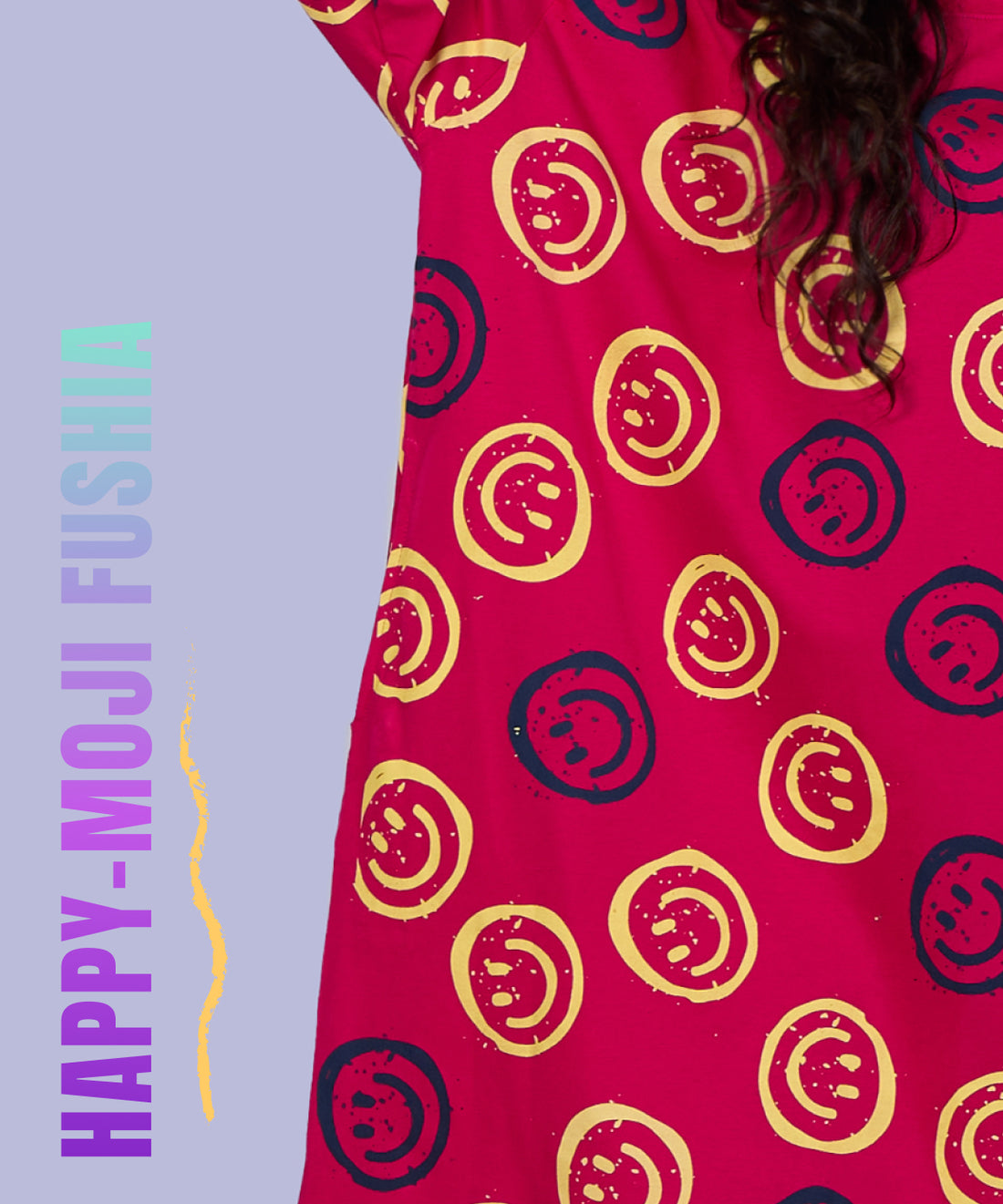 Happy-moji Fuschia Oversized Pocket Tee
