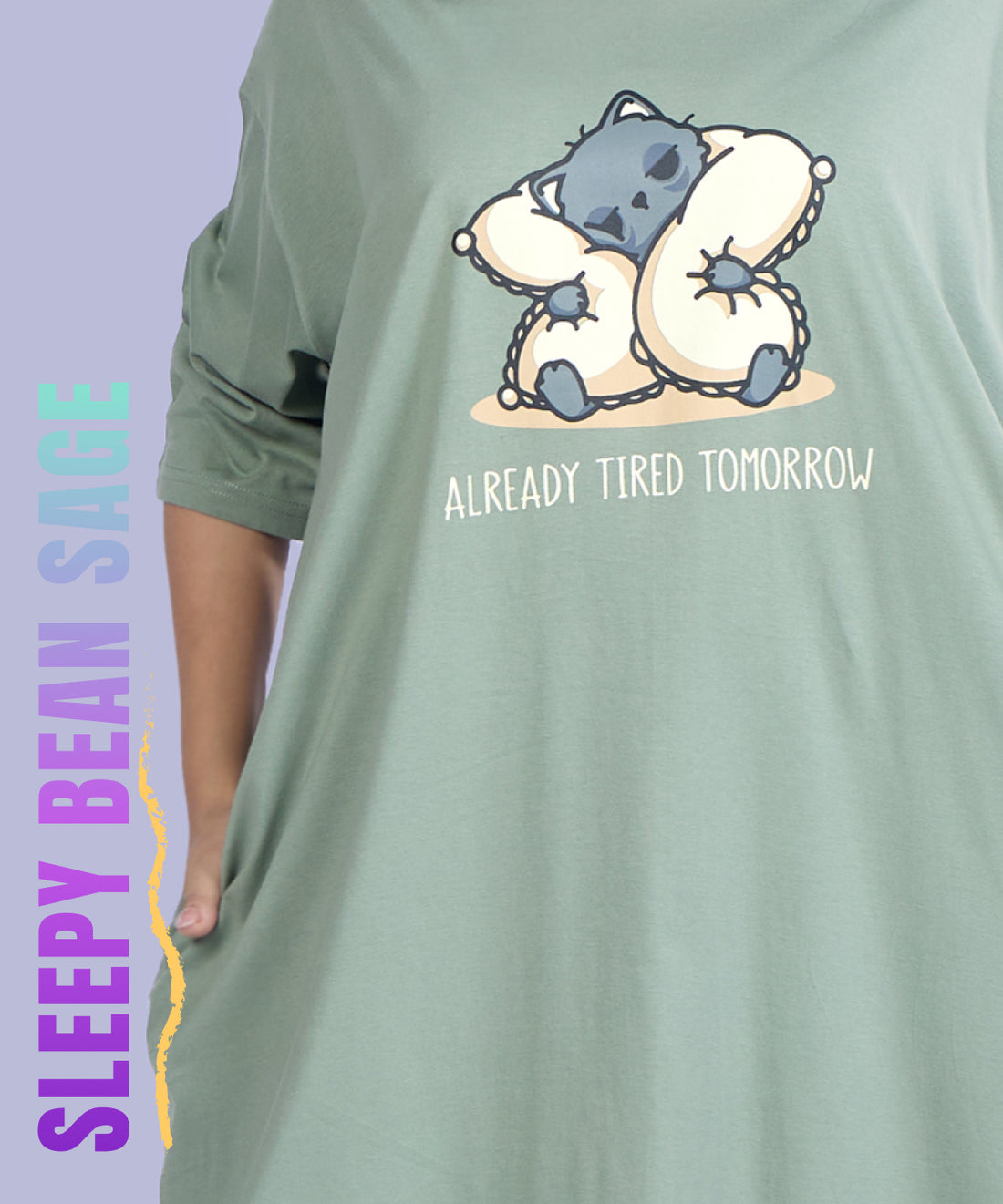Sleepy Bean Sage Oversized Pocket Tee