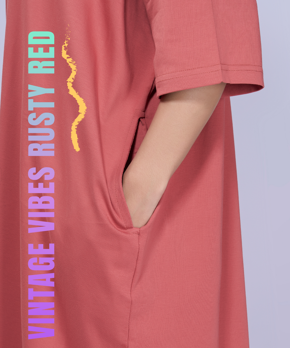 Vintage Vibes Rusty Red Oversized Pocket Tee